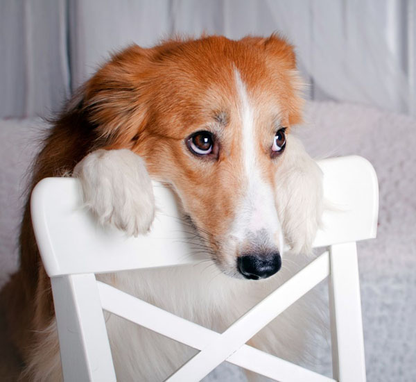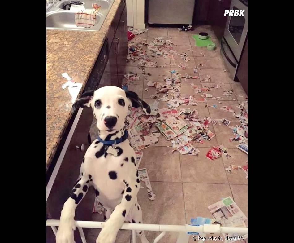 Essa carinha de “culpado” que os doguinhos fazem quando a gente tá brigando com eles, é chamado de SINAL DE APAZIGUAMENTO. Ele se recolhe para tentar não ser atacado pelo humano enfurecido, ele diz
